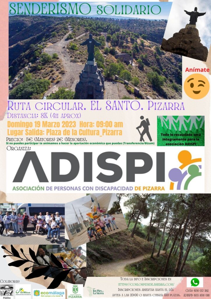 ADISPI, la asociación de personas con discapacidad de Pizarra, organiza una actividad de senderismo solidario para el domingo 19 de marzo a las 9:00 am. Se trata de una ruta circular hacia El Santo.