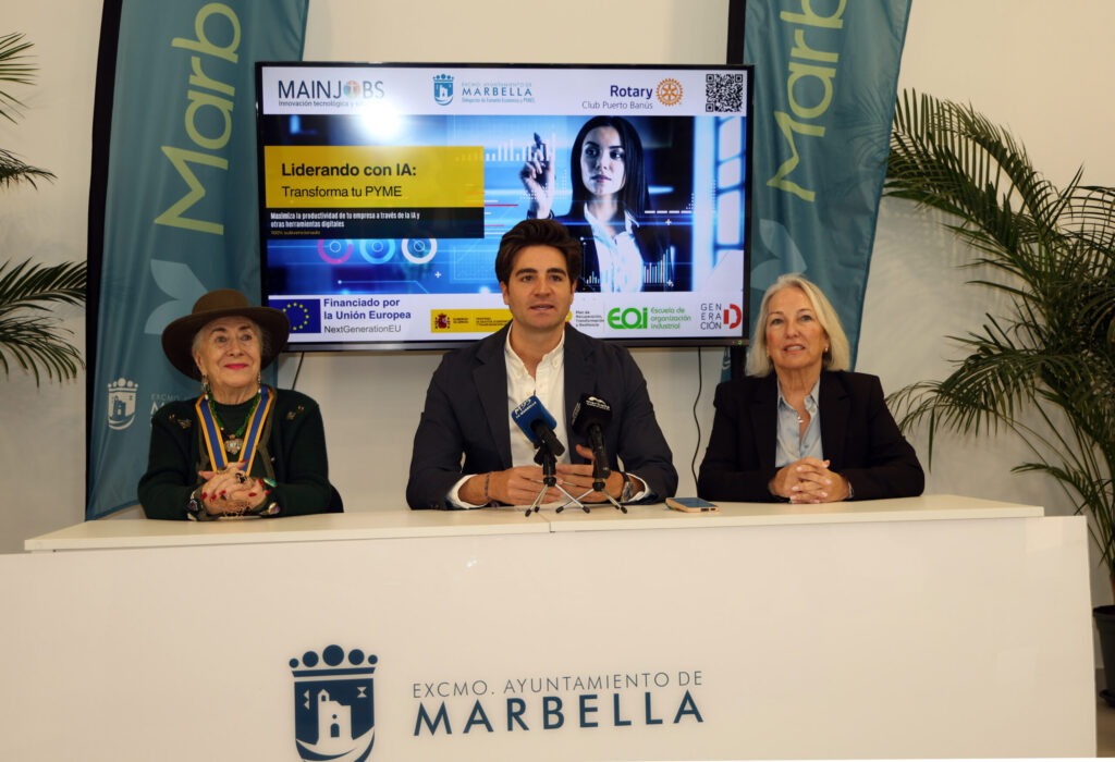 El Ayuntamiento de Marbella impartirá un curso de transformación digital dirigido a pequeñas y medianas empresas locales desde el 18 de marzo hasta el 26 de junio, que incluirá mentorización de cada proyecto empresarial. El asesor responsable de Fomento Económico, Alejandro Freijo, ha presentado la iniciativa junto a la presidenta del Rotary Club de Puerto Banús, Remedios Nieto del Río, y la representante del grupo Mainjobs, María del Carmen Ruiz.