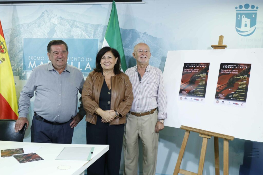 El Teatro Ciudad de Marbella albergará el próximo sábado, día 28 de octubre, a las 20.00 horas, el XVII Festival Flamenco Sierra Blanca. La directora general de Cultura, Carmen Díaz, ha presentado hoy el evento junto al presidente de la peña que da nombre al certamen, Juan Recio, y el cantaor Pepe Lara y ha resaltado “la gran labor que desarrolla la asociación organizadora en la permanente divulgación del flamenco”, así como “el gran elenco que participa en cada edición”. “Es una de las entidades más activas en nuestra ciudad, no solamente con las actividades que desarrollan en su propia sede, sino también a través de la estrecha colaboración que mantiene con la delegación de Cultura”, ha subrayado.