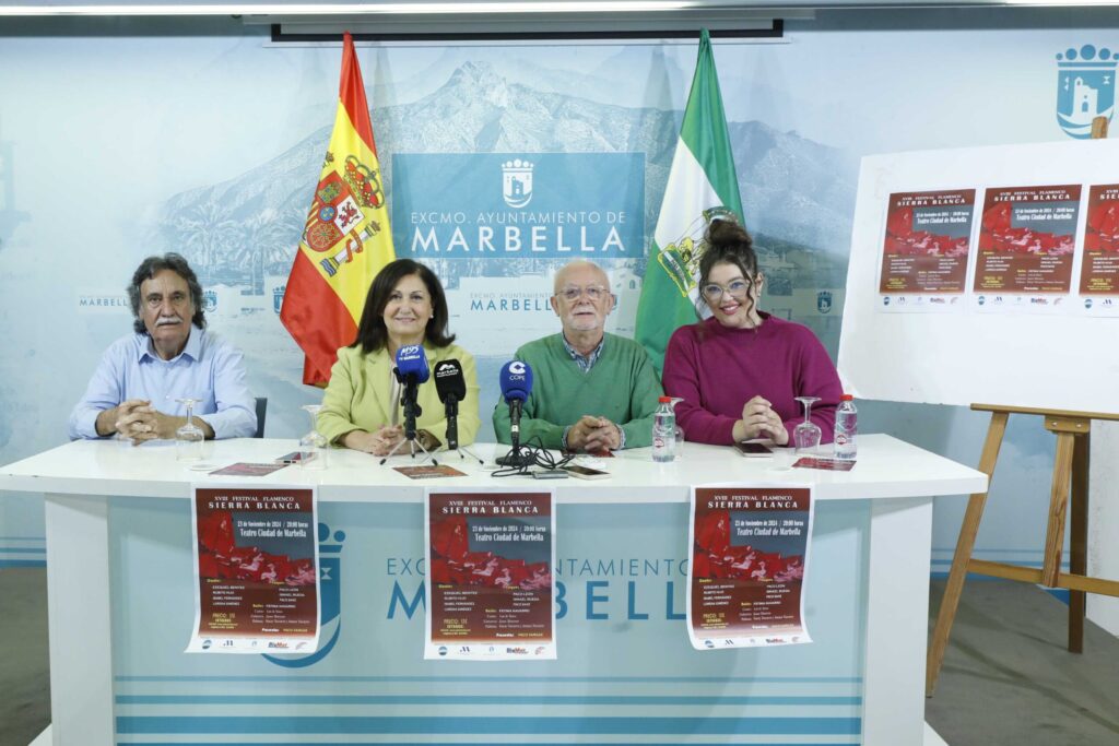 El teatro Ciudad de Marbella albergará este sábado día 23, a las 20.00 horas, el XVIII Festival Flamenco Sierra Blanca. La directora general de Cultura, Carmen Díaz, ha presentado hoy la iniciativa junto al presidente de la Peña Flamenca Sierra Blanca, Juan Recio, y ha subrayado que “es una propuesta plenamente consolidada que cuenta con todo nuestro respaldo y que contribuye a difundir un género que aúna como ningún otro tradición y vanguardia”, al tiempo que ha destacado “la magnífica labor de una entidad que lleva muchos años desarrollando una intensa actividad, tanto divulgativa con campañas dirigidas a escolares como la que se lleva a cabo con motivo del Día de Andalucía, como con eventos de referencia en el circuito especializado”.