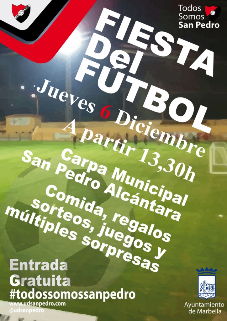 La UD San Pedro ha organizado una FIesta del Fútbol el próximo jueves día 6 a partir de las 13,30 en la carpa municipal de San Pedro Alcántara. Entrada gratuita y habrá comida, juegos, y muchos sorteos.
