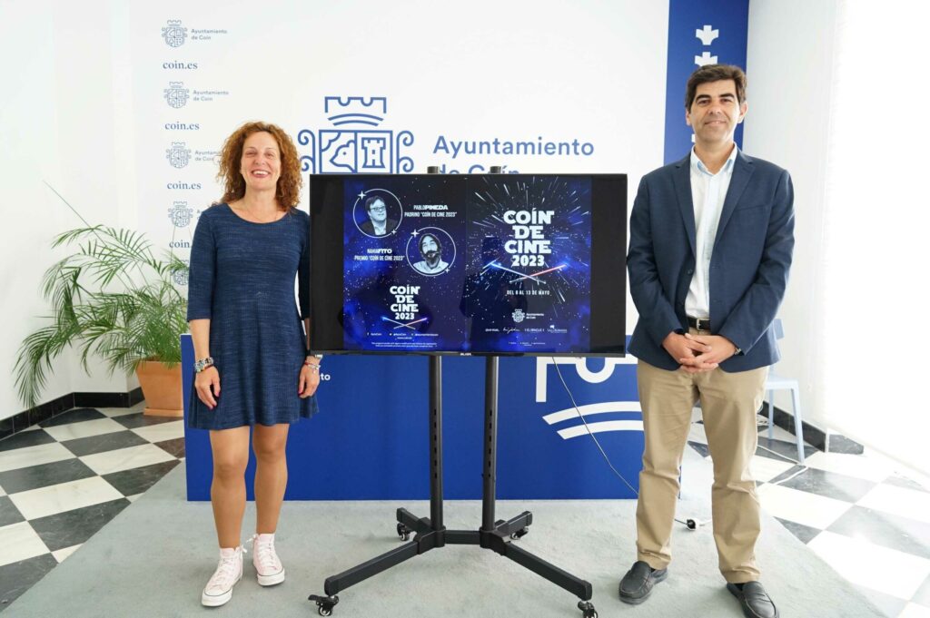 El alcalde de la ciudad, Francisco Santos, ha anunciado esta mañana la programación de la III Semana del Cine de Coín, que lleva por título ‘Coín de cine’. El cartel cuenta con unos padrinos de lujo como son el actor Pablo Pineda y el coineño y profesional en escenografía y en construcción de decorados, Nahia Fito, homenajeado de esta edición. «Con esta semana del cine esperamos tener un fin de semana de cine en el que vamos a disfrutar de un sector que ha dado nombre a Coín durante muchos años, y que persigue ese objetivo en la actualidad, como es posicionar Coín, como Ciudad de Cine», ha destacado Francisco Santos, acompañado por la concejala de Educación, Raquel López.