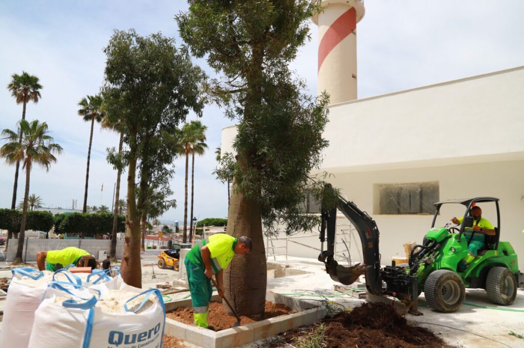 El Ayuntamiento de Marbella ha iniciado las obras de transformación del entorno del Faro con un proyecto de acondicionamiento del jardín que abarca más de 2.200 metros cuadrados de superficie. Los trabajos, que suponen una inversión cercana al millón de euros, incluyen la plantación de tres ejemplares de ‘árbol botella’ como parte de la primera fase del proyecto que se desarrolla actualmente en el Paseo Marítimo de la localidad malagueña.