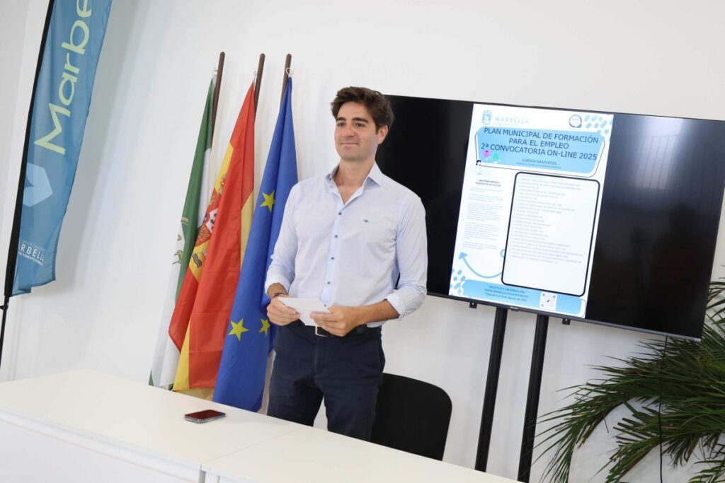 El Ayuntamiento de Marbella ha lanzado la segunda convocatoria del Plan Municipal de Formación para el Empleo de 2025 con 720 nuevas plazas gratuitas en modalidad online. El asesor responsable del ramo, Alejandro Freijo, ha presentado la iniciativa que incluye 24 especialidades de alta demanda laboral dirigidas tanto a personas que buscan insertarse en el mercado como a quienes desean mejorar su empleabilidad.
