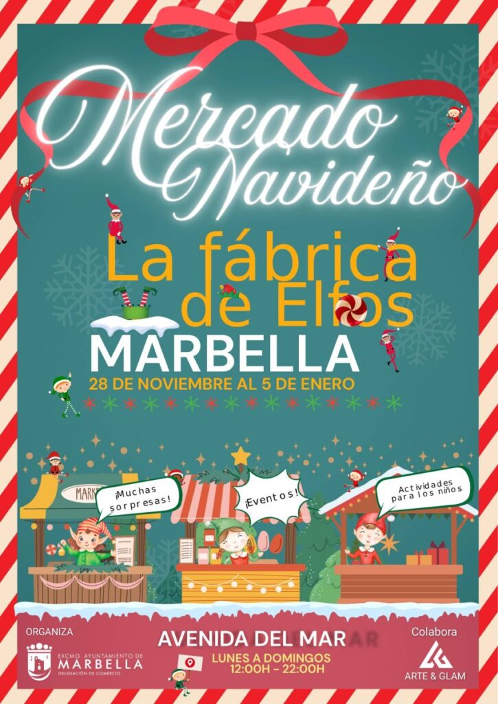 La avenida del Mar de Marbella albergará un Mercado Navideño con más de treinta casetas que ofertarán productos de regalo, artesanía y gastronomía típica navideña. La iniciativa, organizada por la delegación de Comercio en colaboración con la empresa Arte & Glam, se inaugurará este viernes 28 de noviembre a las 19.00 horas y permanecerá abierta hasta el 5 de enero en horario de 12.00 a 22.00 horas.