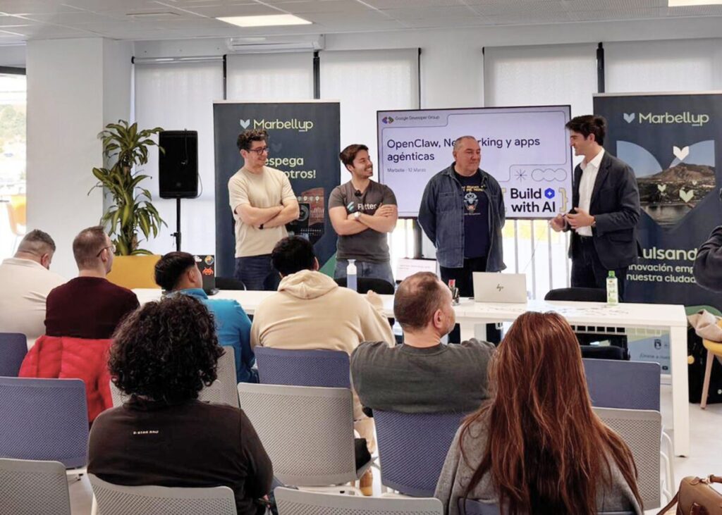 El espacio Marbellup acogió este jueves una jornada técnica sobre inteligencia artificial aplicada al desarrollo de software, organizada por Google Developer Group (GDG) Marbella junto con la delegación de Fomento Económico y PYMES del Ayuntamiento de Marbella. El taller, titulado ‘Apps agénticas con Flutter y Gemini’, se enmarca en la iniciativa internacional #BuildWithAI y reunió a desarrolladores, ingenieros y alumnado interesado en IA generativa.