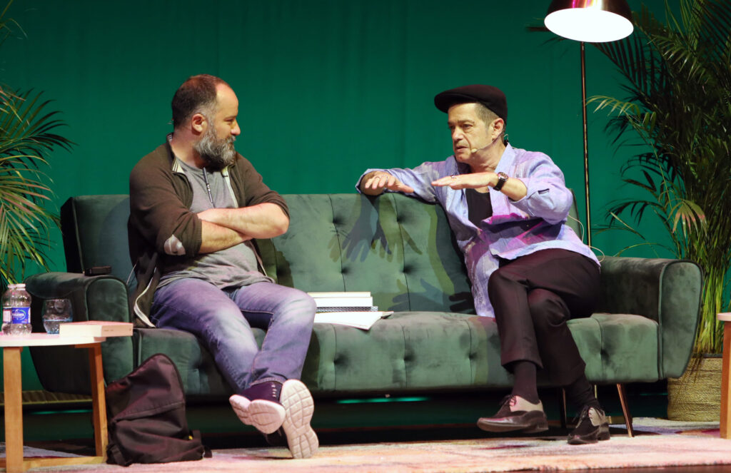 El Teatro Ciudad de Marbella, de nuevo repleto de público, acogió anoche una nueva sesión de los ‘Diálogos Poéticos’ del Festival Marpoética, con Santiago Auserón como gran protagonista de una noche muy especial en la que se fundieron música y poesía. El creador aragonés, una leyenda de la música española gracias a proyectos inolvidables que son historia del pop-rock nacional como Radio Futura o Juan Perro o a sus ensayos filosóficos y sus investigaciones sobre la música popular, no sólo ofreció un concierto con sus propuestas más recientes, sino que reflexionó sobre el papel que la poesía ha jugado en su vida en una amena conversación con el escritor también aragonés Juan Marqués.